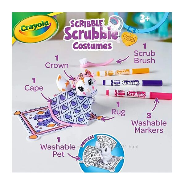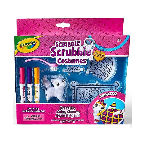 ІГРАШКА ПРИНЦЕСА СКРАББІ СКРАББІ: цей набір містить Кішку Міссі, 1 тканинну діадему, 1 тканинну накидку, 1 королівський тканинний килимок, 3 маркери Скраббі та 1 скраб-щітку.ФАРБУЙ, МИЙ ТА ГРАЙся: розфарбуй і налаштуй своїх домашніх тварин, потім помий їх і почни знову.КОСТЮМИ СКРАББІЯ СКРАББІ: тепер є веселі варіанти костюмів, які дозволяють дітям наряджати своїх домашніх тварин для нових захоплюючих пригод.ЗРОЩУЙТЕ СВОЮ КОЛЕКЦІЮ: додаткові пакети розширення продаються окремо.ПОДАРУНОК ПРИНЦЕСІ: ідеальний подарунок принцесі для дівчаток і хлопчиків, які люблять усе, що стосується королівства.101