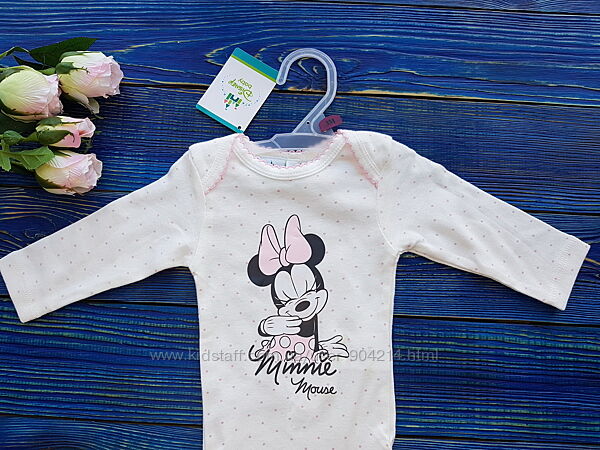 Бодик с длинным рукавом для девочки disney 0-3 и 3-6 месяцев