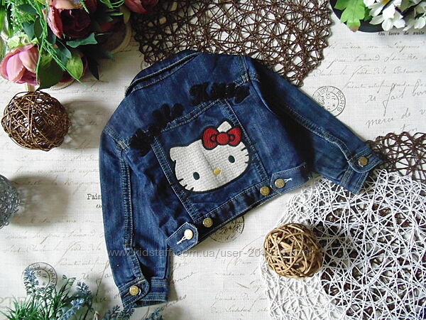 Джинсовый пиджак-ветровка Hello Kitty на 2-3 года,рост 92-98 см.