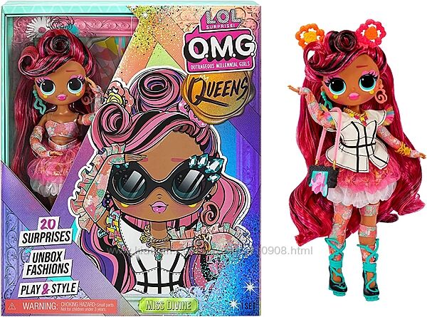 LOL Surprise OMG Queens Miss Divine / Мисс Дивайн!Мисс Дивайн — Королева искусства, которая творчески подходит ко всему, что делает. Вся ее жизнь — искусство. Оденьте мисс Дивайн в ее красочную одежду и шикарные аксессуары.