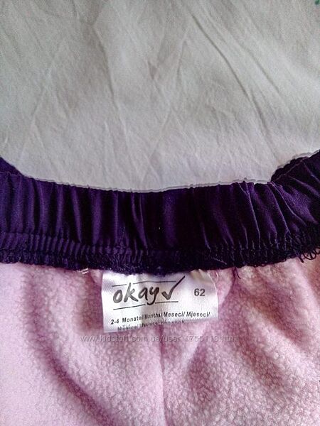 Утеплені штанці двошарові на дитину 2-4 міс. Зріст 62 см. Дуже м´які. Можна піддягати в комбінезон. В гарному стані.Склад: поліестер, фліс.