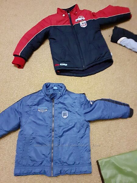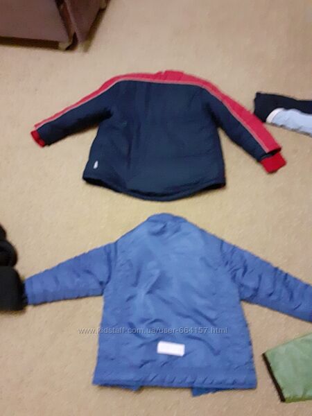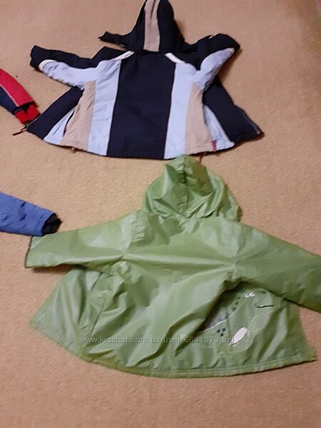 Куртка синяя короткая на 3-4 года, немгого утепленная подкладка 2 кармана, нюанс-где-то поточилась нить цена 50.0 грн Куртка с машинкой утепленная зимняя носили на -5(на теплую зиму) на рост 116 см на 5-6 лет есть капюшон 2 кармана, нюанс-может быть где-то малозаметное пятно цена 70.0 грн Курточка с голубыми вставками зимняя лыжная, утепленная,носили на -5(теплую зиму)капюшон 2 кармана на рост 116-120 см, нюанс-на рукавах может быть где-то пятно За 2 курточки цена 120.0 грн Плащ, утепленный на 5-6 лет, нюанс-на принте динозавра поточился глаз , маленькое пятно на рукаве