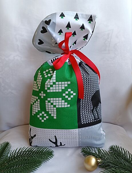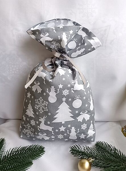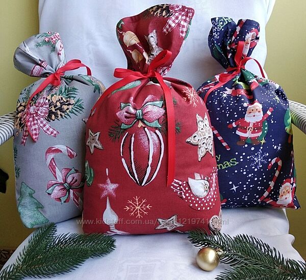 Новогодние мешочки для упаковки подарков с хлопкаМешочки пустые,без наполнения