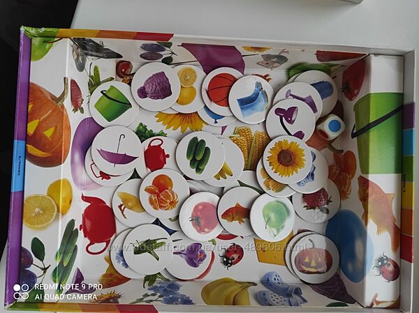 Чудова гра для маленьких дітей. Завдяки цій розвиваючій грі діти вивчатимуть кольори. Малюкові треба буде покрити цілий круг кружечками. Круг розділений на кольорові сектори. Для гри є також кубик, який теж має різні кольорові грані. Для кожного кольору планшетки, дитина підбиратиме по 6 кружечків такого ж кольору, що і поле, тим самим тренуючи своє цветовосприятие. За допомогою цієї гри можна добре потренувати пам´ять. Гравцям треба розкласти кружечки з картинками на ігровому полі картинками вниз. А далі, хто запам´ятав, де що лежить? Де червона парасолька, а де зелений огірок?З цією грою мої діти легко вивчили кольри.