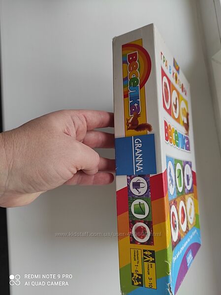 Грою користувальсь активно. Кубик ідеальний, всі фішки на місці і в ідеалі. Поле з вивороту заклеїне скотчом.Коробка трішки втомилась((( Але на якість гри ніяк не впливає.