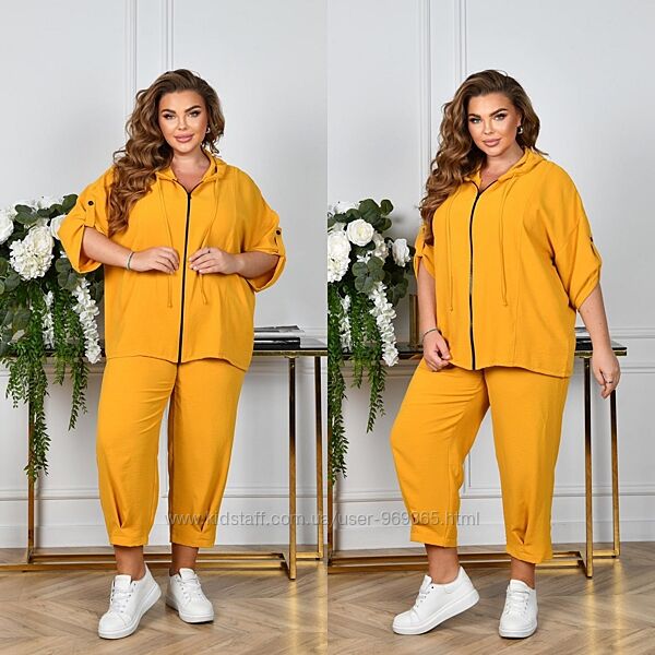 Мегастильний літній костюм із жатого крепу (тканина не мнеться, розтяжність мінімальна).