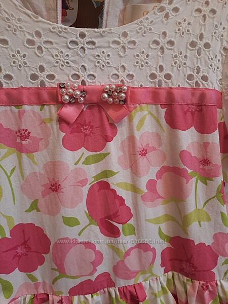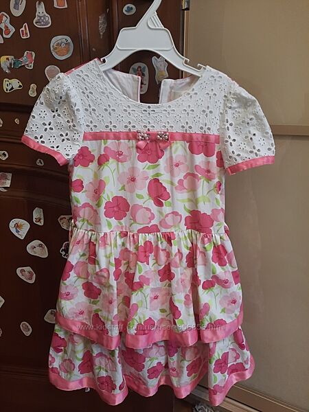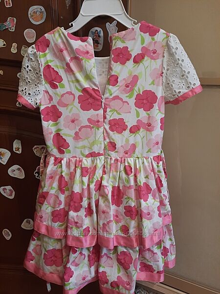 Платье нарядное хлопковое турецкой фирмы Deloras, есть подъюбник к нему пышный, размер 110, (на бирке 116, но маломерит), одевали 1 раз на праздник. Длина 63 см. Подмышки 31см.