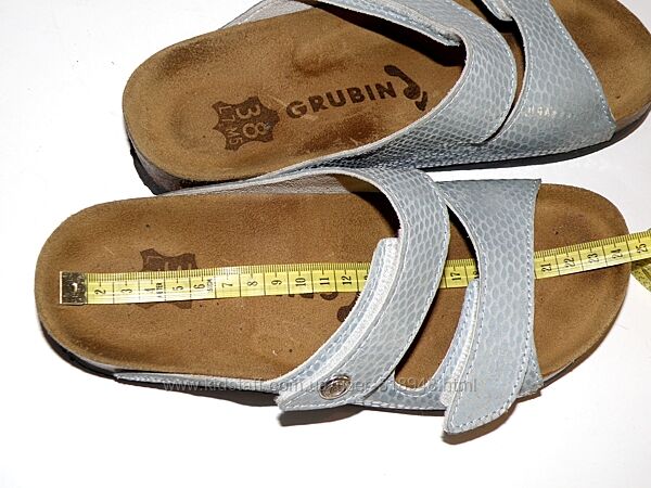 Grubin шльопанці ортопедичні з натуральної шкіри блакитного кольору з тисненням, підошва з натурального короку. Застібка на липучках.Б/в 1 сезон, носились мало, дуже гарний стан.