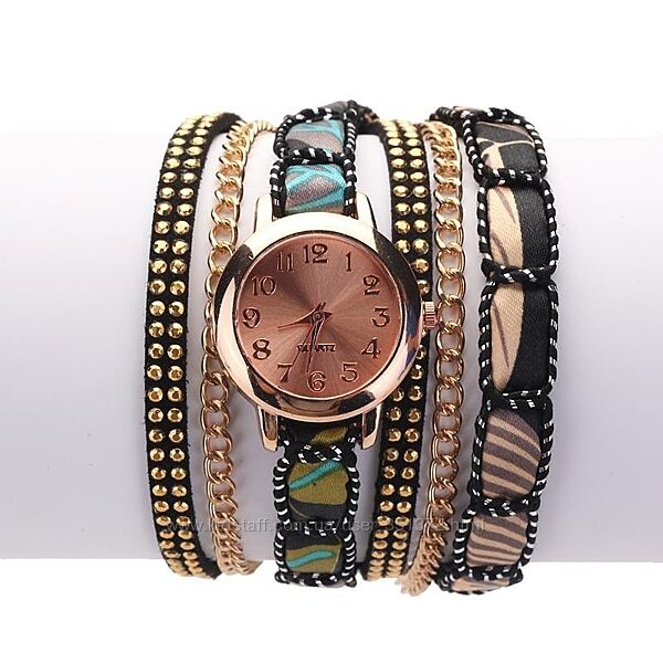 Часы-браслет женские наручные с атласной лентой и золотой цепочкой