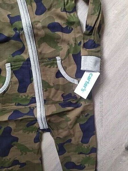 Ромпер для хлопчика фірми Carters. Для полегшення переодягання застібається на блискавку. Посередині карман. Еластичні манжети на рукавичках та колошах. Тканина м´яка та приємна для тіла.Можна одягати під верхній одяг малюків.