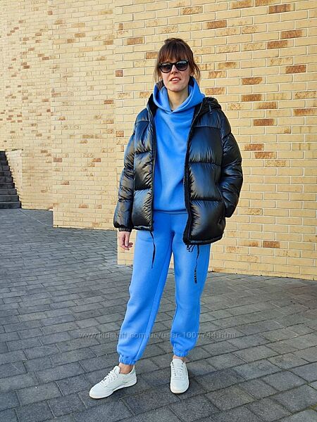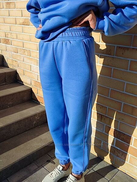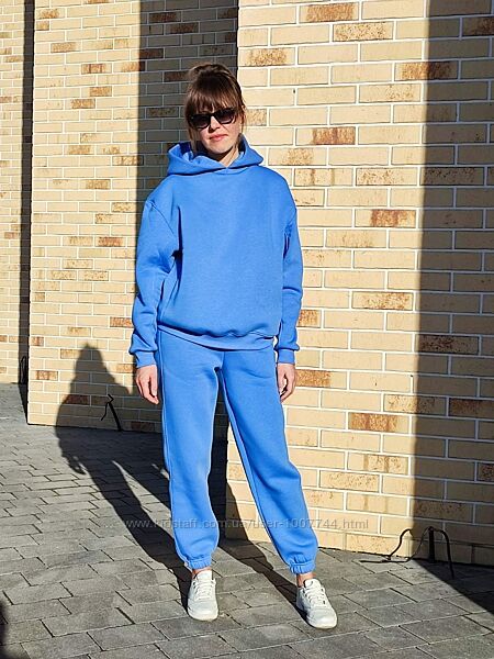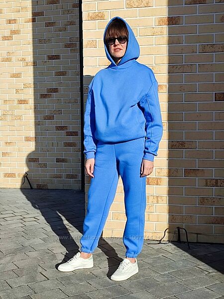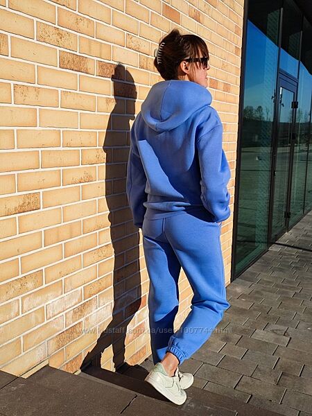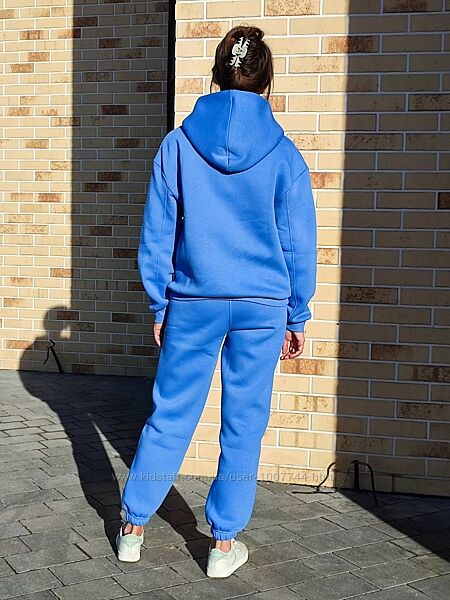 Жіночий костюм на флісі, теплий та зручний, глибокий капюшон, висока посадка брючків, кишені є як і в худі так і в брюках, гарний блакитний колір, якісна тканина та чудова посадка, розмір SБРЮКИ- ДОВЖИНА -103,5 СМ, ПОБ - 52 СМ, ПОШАГОВИЙ - 72 СМ, ПОЯС - 64 СМ. ХУДІ - ДОВЖИНА - 66 СМ, ПЛЕЧІ - 57 СМ ( СПЕЩЕНІ ), РУКАВ - 59 СМ, ПОГ - 52 СМ
