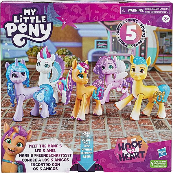 Колекційний набір містить 5 улюблених персонажів поні: Санні Старскаут, Принцеса Піп Петалс, Іззі Мунбоу, Зіп Сторм і Хітч Першовідкривач. Відкрийте для себе магію Cutie Mark за допомогою шармів. Кожна іграшка поні оснащена шармом у формі їхнього знака Cutie Mark для уявлення про магічні здібності.