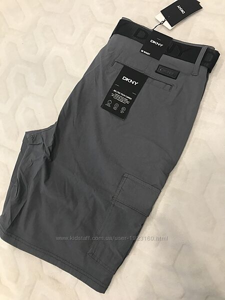 #DKNY Чоловічі шорти-карго Jumel Tech від DKNY мають довжину трохи нижче талії, мають пояс на талії та виготовлені з еластичної тканини. Технічна еластична тканина Дві передні кишені для рук; дві вантажні кишені Застібка-блискавка з ґудзиком; підперезаний поясом Матеріали та догляд Можна прати в пральній машині Нейлон/спандекс. Розміри: сірий 38;40 ; чорний 38;40 ; оливковий 38;40