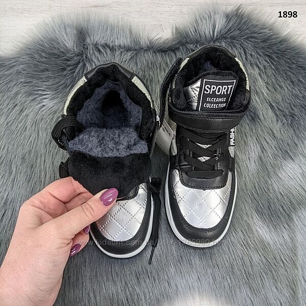 Ботинки детские зимние для девочки черные c серым спортивного плана КанарейкаСтильные зимние ботиночки для девочки подростка спортивного плана с необычным дизайном.Снаружи эко-кожа + непромокаемая плащевка по бокам.Внутри плотный густой мех, который прекрасно сохраняет тепло, и не дает холоду проникнуть внутрь к ножкам вашего ребенка.Подъем регулируется липучкой и шнурками.Модная интересная моделька для ваших деток.Подошва с мелким протектором, не скользит. Высота подошвы под пяткой 2,5 см, под носком 2 смВысота ботинка от подошвы 8-9 смЗамер сделан по стельке, обязательно оставляйте запас на теплый носочек, и чтобы обувь была не впритык и не сжимала ножку.