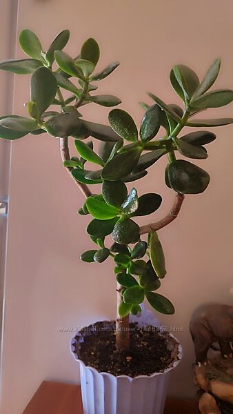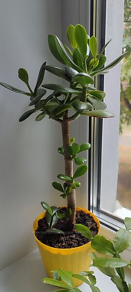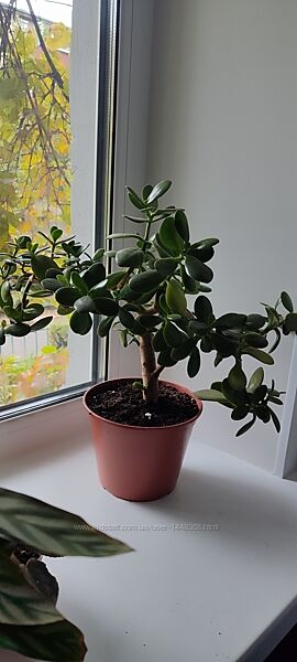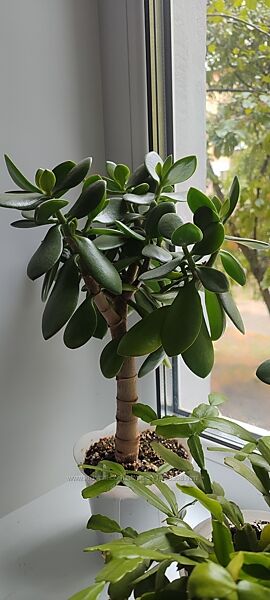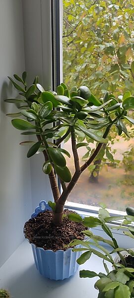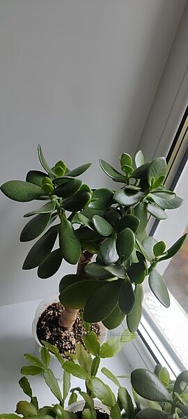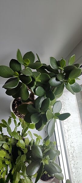 Денежное дерево. Растения разных размеров и двух сортов. У одних листики закруглённые у других более острые на концах. Листики крупные. Крепкие, здоровые растения.У меня стоят как на солнышке, так и в полутени. Не прихотливое комнатное растение. Если что то заинтересует могу сделать дополнительное фото растения.