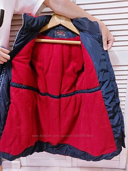 Пальто зимние с шапкой и шарфом, красное и синее, р.134-150