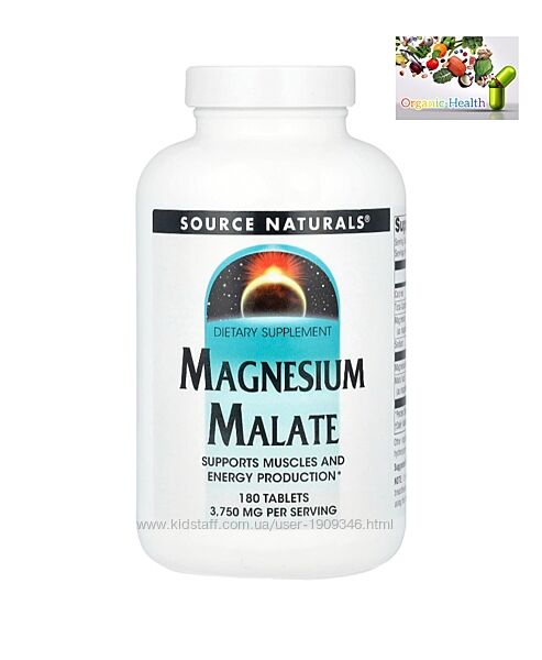 Магний , Магний малат , Source Naturals, малат магния, 3750 мг90 таблеток-410 грн