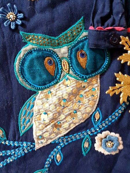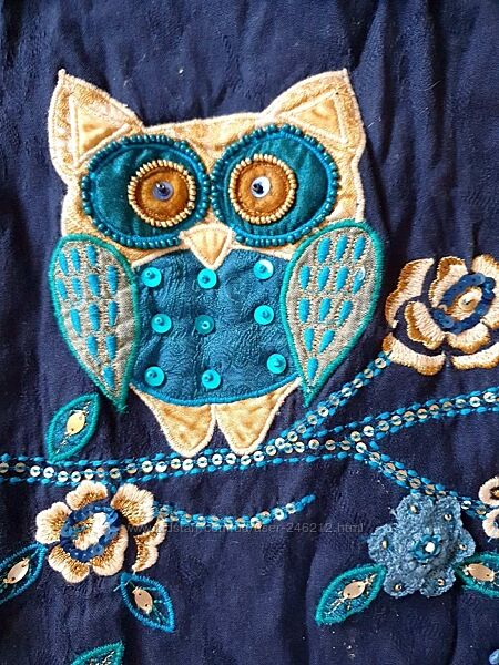 Спереди шикарная вышивка совушек , и бисером , и паетки , и апликация.
