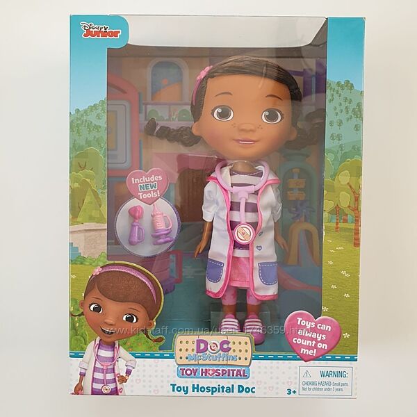 Лялька Доктор Плюшева Just Play Doc McStuffins Toy Hospital Doc.Дотті зі стетоскопом зроблена за мотивами відомого мультсеріалу Доктор Плюшева від компанії Disney про маленьку дівчинку Дотті, яка дуже любить грати в доктора зі своїми м´якими іграшками. Даний набір включає в себе фігурку Дотті в медичній формі і незмінний атрибут справжнього лікаря - стетоскоп. Граючи з лялькою, дитина розвиває свої творчі вміння, розширює фантазію і знайомиться з дуже важливою і цікавою професією - професію лікаря!