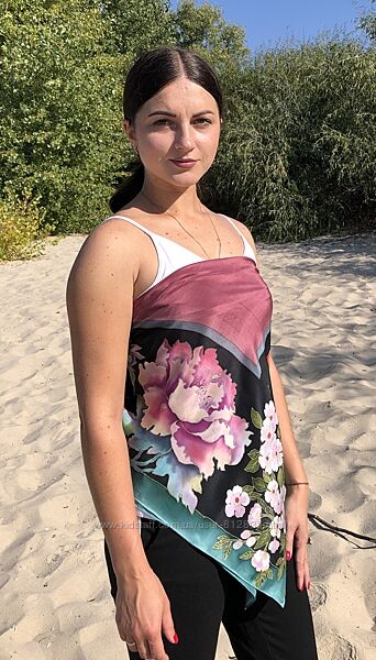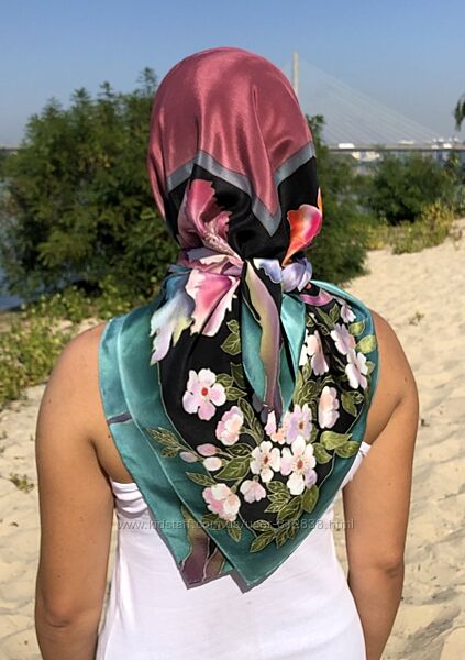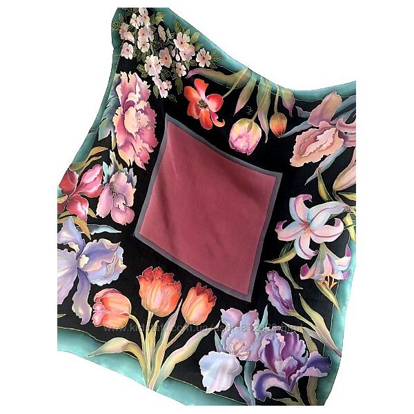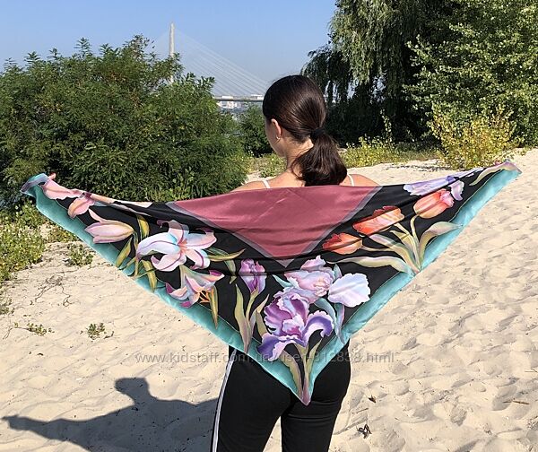 Подробное описание: Ручний розпис велика шовкова хустка Весняні квіти.