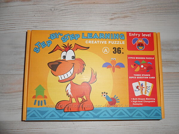 Продам деревянный пазл: Геонимо (три уровня сложности). Особенности игры: сопоставление фигур, помогает детям учится чему-то новому, изучать цвета и геометрические фигуры, улучшает детскую координацию глаз и рук,развивает логическое мышление.1. Уровень начальный (с собачкой и буквой А). В наборе карточки трех уровней сложности: легкие (15 штук), средней сложности (15 штук), сложные (30 штук). Деревянная коробка, глазки 2 штуки, пазл с деревянными фигурами (37 штук).