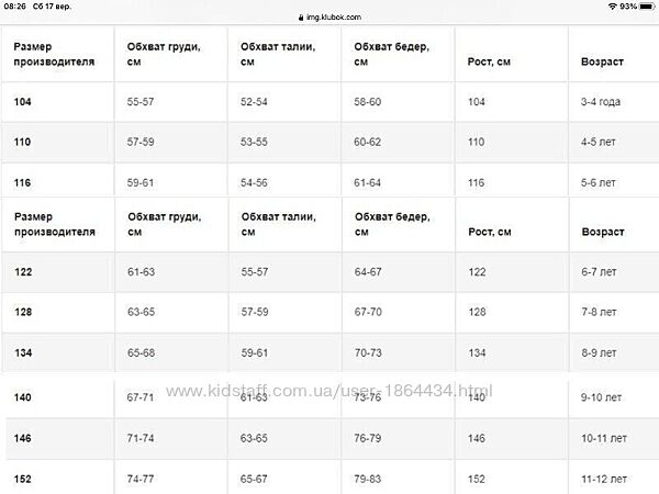 | Рост | 92 см, 98 см, 104 см, 110 см, 116 см |