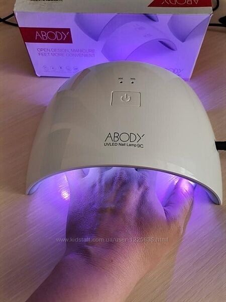 Abody Nail Lamp 9С LED+UV - это гибридная лампа из линейки SUN. Кнопкой выбираете нужное время таймера (гель-лак 10-30 сек, геля и гель-краски 30-60 сек) и просто подносите руку - это намного сокращает время работы, а также существенно сокращает расходы на электроэнергию. Лампа отличается от других ламп SUN отсутствием дна, поэтому отлично подойдет как для маникюра так и для педикюра. Выполнена из ударопрочного материала, оснащена инфракрасным сенсором движения. Размер -210*120*80mm (длинна*ширина*высота). 2 источника света, чип с длинной волны 365nm полимеризует UV материалы, а чип с длинной волны 405nm уже полимеризует LED материалы. Характеристики: Мощность: 24 Вт; Количество светодиодов: 15шт. Наличие таймера: есть Сенсор движения: есть В комплекте: лампа, блок питания, инструкция по эксплуатации