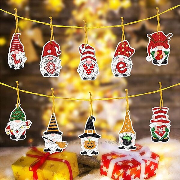 Підвіски на ялинку(алмазна мозаїка).Набір для творчості,в уп.10 шт