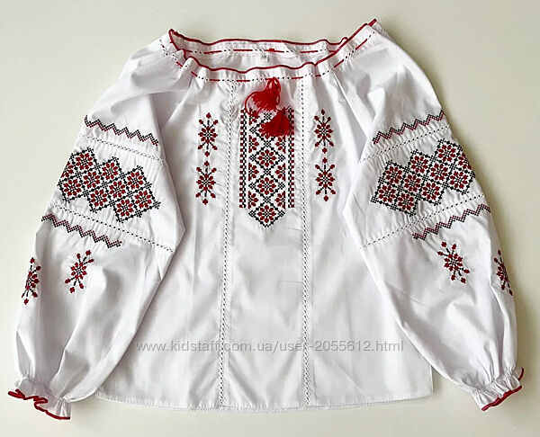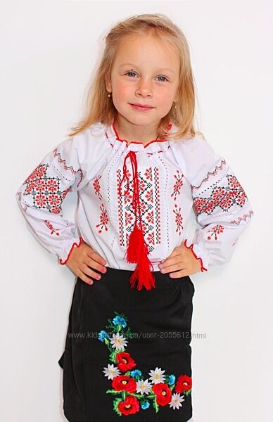 Вишиванка для дівчинки вишита хрестиком в класичному стиліМатеріал блузи - сорочкова тканина. Є з червоною та синьою вишивкою. Нитки з поліестеру. Виробник - Україна.