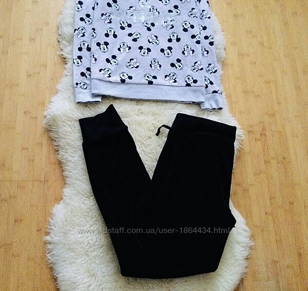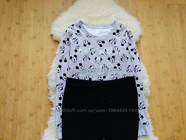 Disney Флисовая пижама Мики Маус S-M. зимний Домашний комплект. флисовый реглан с манжетами и изображением Мики Мауса, блестящим серебряным принтом , флисовые штаники на манжетиках. состояние идеальное Длина 63; подмышки 50; рукав от ворота 70; Длина 97; шаговый 74Другие объявления продавца