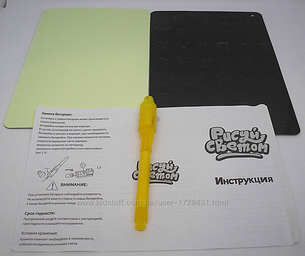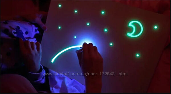 Хотите окунуть своего ребёнка в романтику и побудить интерес к творчеству? Тогда эта удивительная вещь для Вас. Невидимые чернила, невидимые рисунки, которые волшебным образом по вашему желанию как по мановению волшебной палочки вдруг засияют в темноте и по происшествии некоторого времени загадочно гаснут как звёзды. Но можна написать и шпионский текст в стиле Джеймса Бонда и пока он дастанется врагу секрет исчезнет и тот ничего не увидит. Магия? Нет – современные технологии.Световой планшет представляет собой фотолюминисцентный ПВХ материал в рамке, который быстро накапливает свет от искусственного или естественного источника освещения и затем некоторое время светится в темноте постепенно затухая.