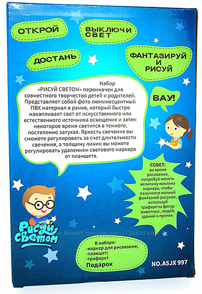 Подробное описание: Набор Рисуй светом А4. Рисование в темноте. Набор для детей.