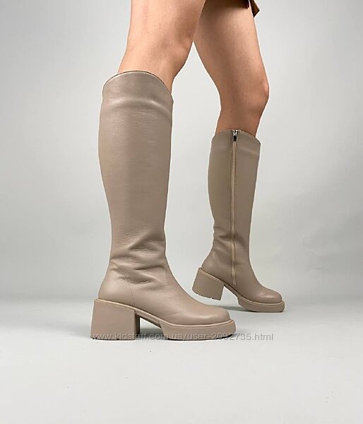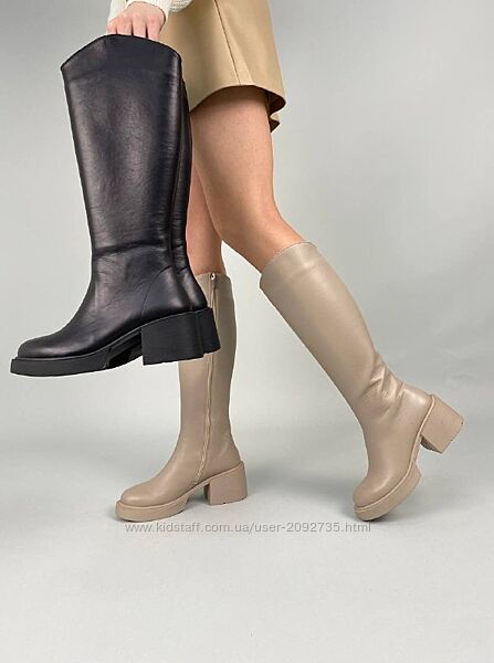 Подробное описание: Чоботи жіночі шкіряні бежеві чорні на підборах, демі зима Артикул 8956