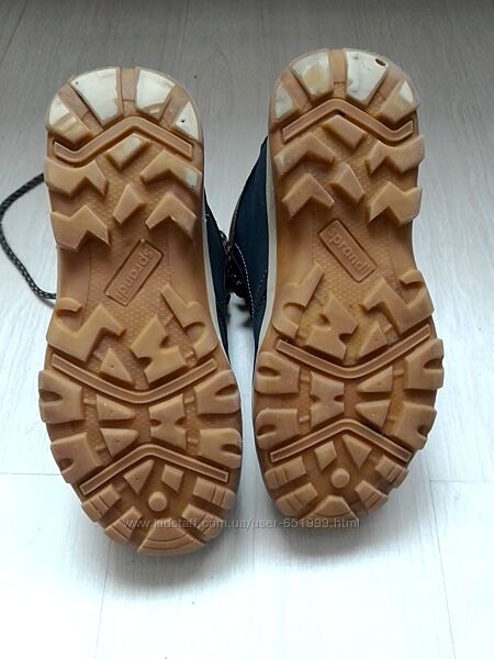 Є черевики, виробник Sprandi. Рік народження - позаминулий, використання - один сезон, стан - годні! Ну як годні? Як підлітки носять взуття? Там вдарять м´яча, там підскочать на паркан, там черпнуть асфальт... Так і ці черевики - більш-менш приємні на вигляд, особливо в темний час .Розмір 37, або ж 25 см. Колір темно-синій. Матеріал - штучна шкіра зовні та щось подібне на фліс всередині. Підошва ціла (не каучук, і не пластик).