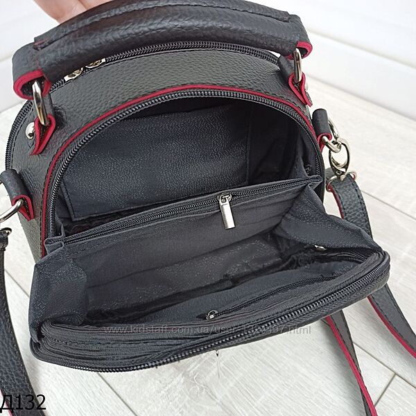 Особливості: Одне відділення на двох блискавках, поділене навпіл карманом-перегородкою на блискавці. Усередині кишеня для телефону та внутрішня кишеню на блискавці. З тильного боку кишеня на блискавці