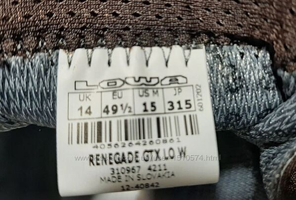 Подробное описание: р.49.5 Lowa Renegade GTX Lo W трековые ботинки оригинал