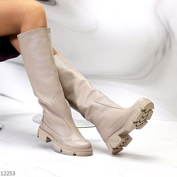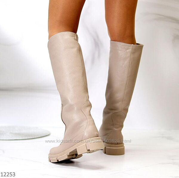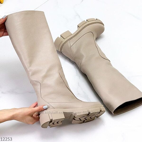 Подробное описание: Зимові шкіряні бежеві чоботи труби, натур шкіра флотар, 37-40р