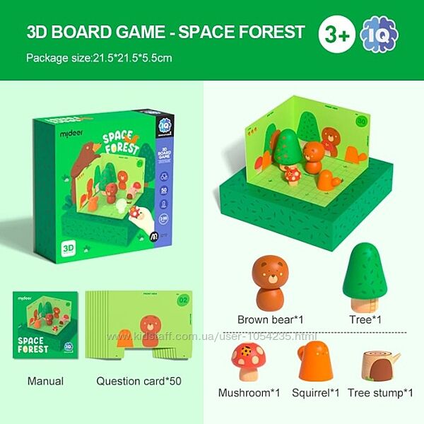 Продам интересный, яркий, качественный наборчик Mideer: "Фигуры в пространстве".1. Игра "Фигуры в пространстве" от Mideer. Потрясающая игра в 3D стиле. Дети должны помочь найти в этом лесу хозяина различных теней. Найдет ли бурый медведь свою тень? Давайте ему поможем. Игра поможет усилить тренировку концентрации мозга, тренировать координацию рук и глаз, ощущать трехмерные модели. На поле устанавливается карточка с фоном и перед ней необходимо правильно расставить все детали, чтобы они в пространстве соответствовали карточке, находились в правильной проэкции, чтобы с двух сторон фона они совпадали. Комплектация: инструкция, 25 карточек с заданиями, 1 бурый медведь, 1 дерево, 1 гриб, 1 белка, 1 пень. Материал: бумага, дерево. Возрастная категория 3+. Цена: 650 грн.