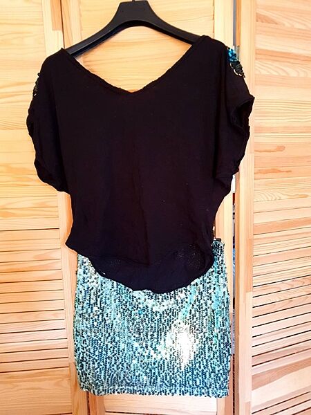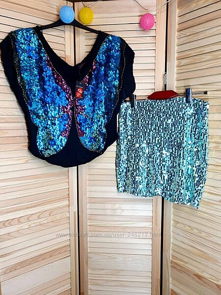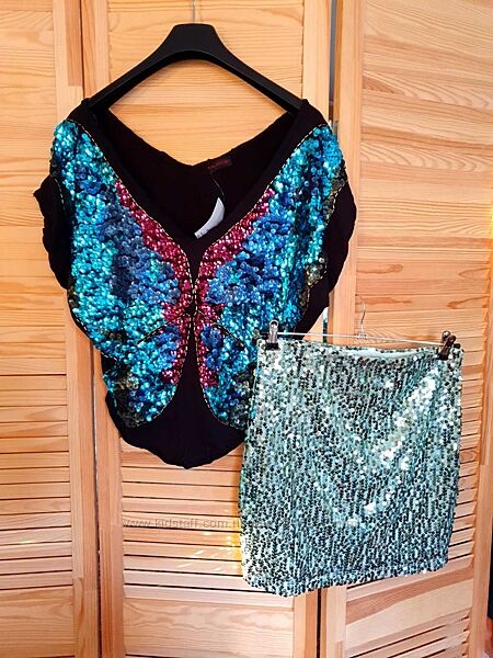 Подробное описание: Паеточный комплект футболочка miss selfridge и юбка gina tricot s-m