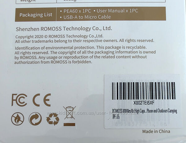 1 x ROMOSS 60000mAh (ПоверБанк)