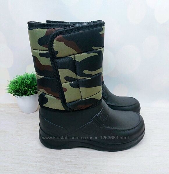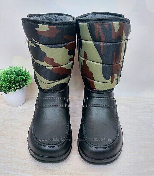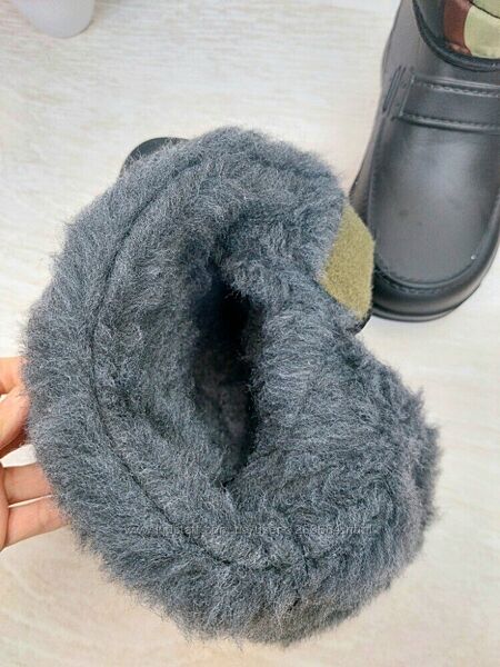 Теплі водонепроникні черевики чорного кольору, верх хакі на штучному хутрі! Матеріал - піна, плащівка Всередині штучне хутро легкіЗроблено в Україні