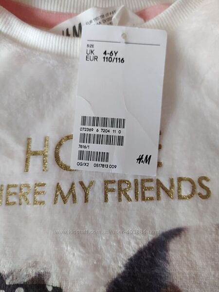 Мякий плюшевий світшот H&M 4-6 років 110-116