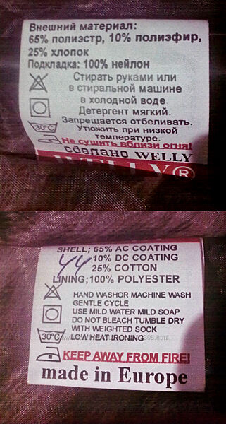 Материал верха - прорезиненная плащевка, подкладка - нейлон
