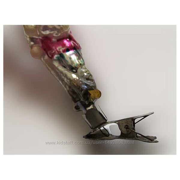 В 50-х годах XX века, после празднования в 1949 году юбилея Александра Сергеевича Пушкина, фабрики и мастерские стали выпускать фигурки с изображением героев из его сказок.Елочная игрушка «Старик с неводом» выпущена одной из советских артелей по мотивам «Сказки о рыбаке и рыбке» и имеет коллекционную ценность. Материал: стекло, амальгама, роспись, мет.прищепка Время изготовления: 1950 – 1959 гг Производство:Московский завод стеклянных елочных украшений и оптических изделий Состояние:сохранность винтажная,имеет скол и следы времени,которые соответствуют возрасту,см.фото