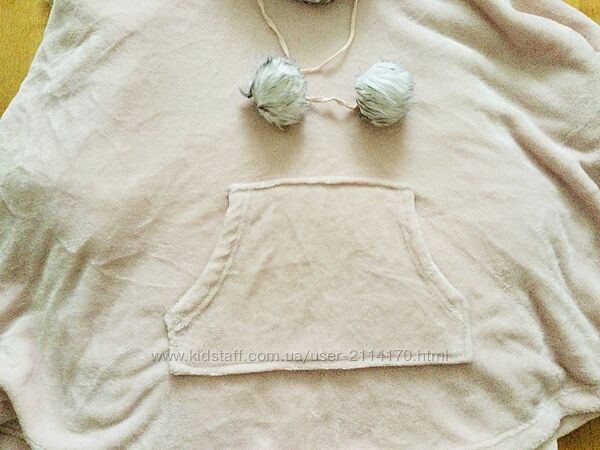 Подробное описание: F&F Пончо. Флисовое S-M зимнее с капюшоном и меховой отделкой. цвет пудра.