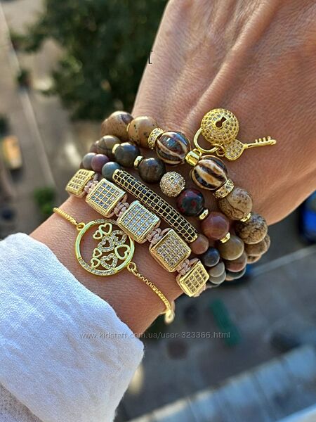 Сет з 5 браслетів "Пікассо"Яшма, керамічні намистини, вощений шнур, преміальна фурнітура інкрустована фіанітами.