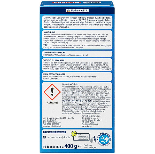 Подробное описание: Таблетки для чистки унитаза DenkMit Германия 16 шт / поштучно