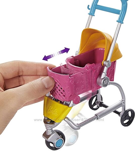 Любителі тварин можуть допомогти ляльці Барбі® взяти своїх цуценят на ходу за допомогою ігрового набору Barbie® Stroll ´n Play Pups ™ - він включає коляску з функцією трансформації, двох цуценят та сім аксесуарів для догляду за ними! Готові до ігрового дня щеняти? Лялька Барбі® має два способи перевезти своїх домашніх тварин: посадити перше цуценя в коляску, а друге - у сумочку ляльки Барбі®; або витягніть передню частину коляски, щоб розширити її, подвоївши її розмір, щоб вмістити обох цуценят всередині! Коляска для цуценят має сучасний вигляд та барвистий дизайн - помаранчевий погодний щит можна натягнути, щоб забезпечити тінь, гачок для сумочки для ляльки Barbie® - реалістичний штрих, а сріблясті акценти додають стилю. Аксесуари для розповіді сюжетів включають усе, що потрібно дітям, щоб розіграти годування та час гри. Лялька Barbie® мила і невимушена в смугастій сукні та рожевих кросівках. Маленькі уяви можуть розповісти стільки історій за допомогою набору Barbie® Stroll ´n Play Pups ™.висота Барбі - 29 см.