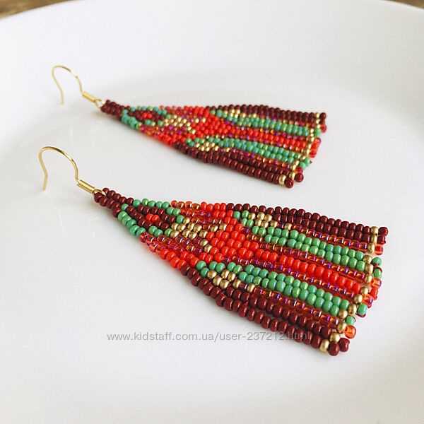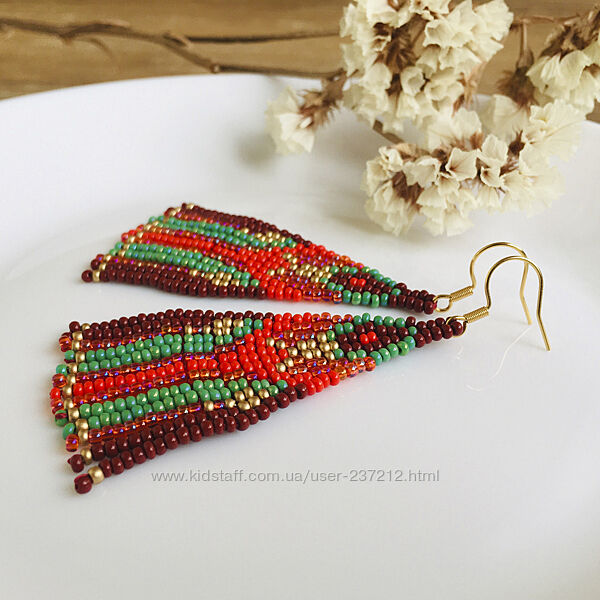 Украсьте свой праздничный образ этой эффектной парой бисерных сережек с бахромой. Насыщенный цветами абстрактный узор будет сиять при каждомдвижении и приковывать взгляды.