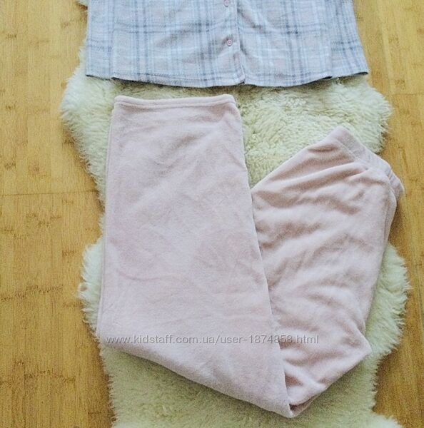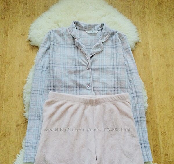 Primark пижама S-M флисовый зимний комплект в Стиле Victoria´s Secret. флисовый верх в клетку на пуговичках и пушистые кремовые флисовые штаники. состояние идеальное Длина 65; подмышки 49; рукав от ворота 71; Длина 104; шаговый 79Другие объявления продавца
